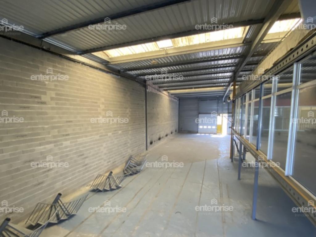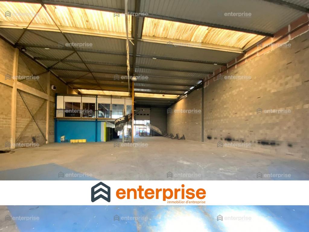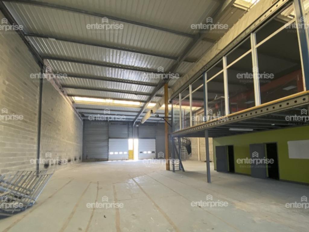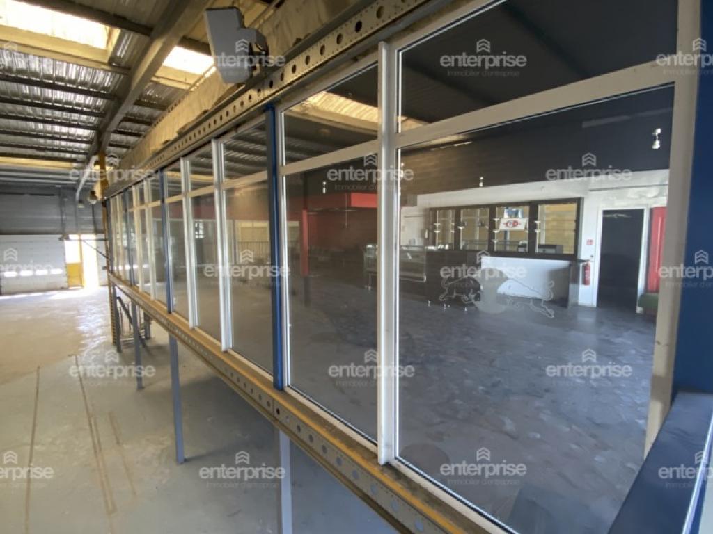 Dans un site sécurisé avec parking, un local de 800m2 environ traversant avec d'un côté une entrée avec portes vitrées et de l'autre deux portes sectionnelles et composé de blocs sanitaires (sanitaires PMR et douches), un local technique, dalle béton, hauteur de 6m environ, convecteurs gaz. Ainsi que d'une mezzanine de 200m2 environ avec double accès et isolée avec cloisons vitrées.